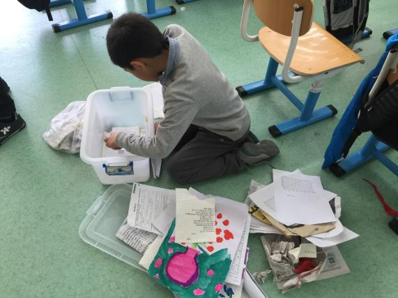 孩子们分成小组,手捧着回收箱兴高采烈地出发了。但第一次的回收情况让他们大跌眼镜,有的回收箱里堆满了杂物,有的只放了几张小碎纸,还有的班把回收箱改造成了作业箱,甚至有的纸箱里发现了擤鼻涕的卫生纸。