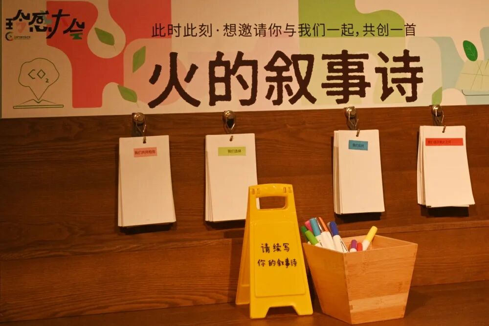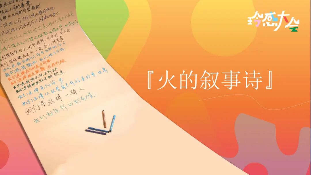 两天的快乐时光转瞬即逝,这场气候行动者的聚会也迎来了最终章,先别急着告别散场。还记得前面提到的“火的叙事诗”吗?它承载着伙伴们对气候问题的关心和期待以及对彼此的支持和祝福隆重出现2025玲感大会的舞台上。这一刻,“燃”起来了。