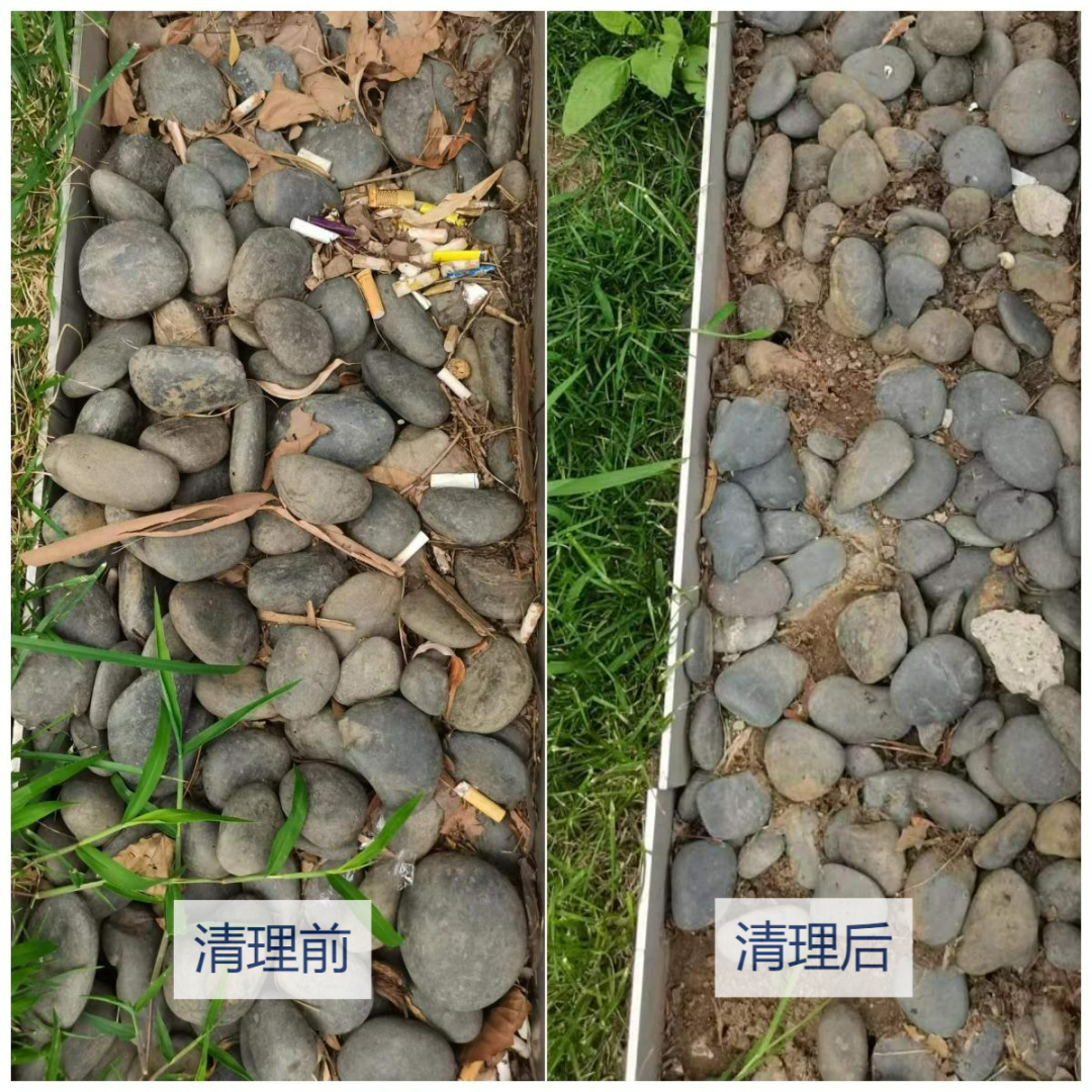 ▲经过清洁的路旁,干净多了呢!烟头虽小,也不要乱丢啊!因为烟头中的尼古丁会渗出到土壤中,污染环境。
