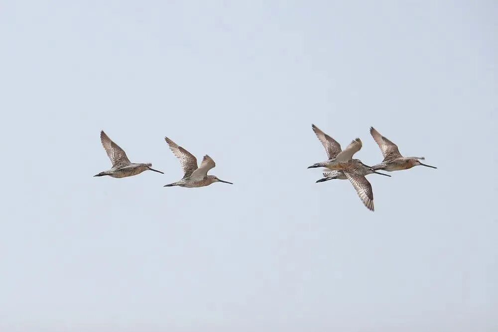 ▲飞翔中的半蹼鹬(国家二级保护野生动物)