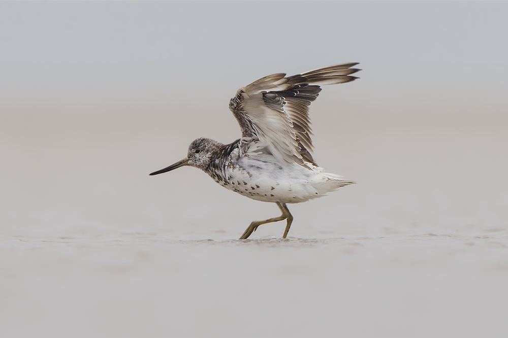 ▲滩涂上的小青脚鹬(国家一级保护野生动物,IUCN濒危物种)