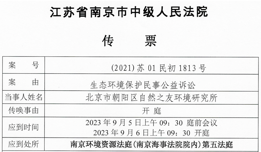 🔹 向南京市中级人民法院提起环境公益诉讼