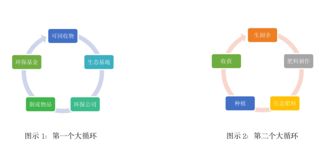 在我们的生态村,校园垃圾会根据3R原则(源头减量Reduce、重复使用Reuse、回收利用Recycle),进行一个小循环和两个大循环。在这个过程中,垃圾会变废为宝,应用到生态村的建设中。