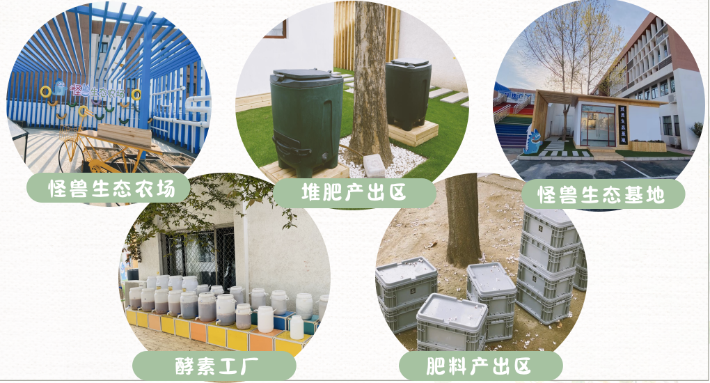 我们的环保行动得到了全校师生的认可,也得到了学校领导的大力支持和鼓励。学校划拨了多个空余的区域,供我们开展更有意义的环保教育,就这样,孩子们拥有了“生态村”——为打造零废弃学校而建立的环保实践基地。生态村里包括生态基地、生态堆肥产出区、生态农场、生态种植园。