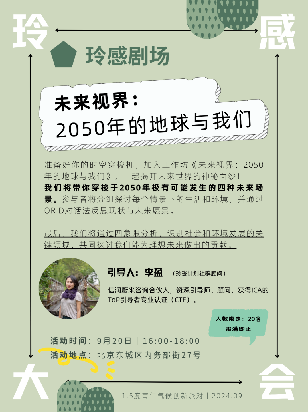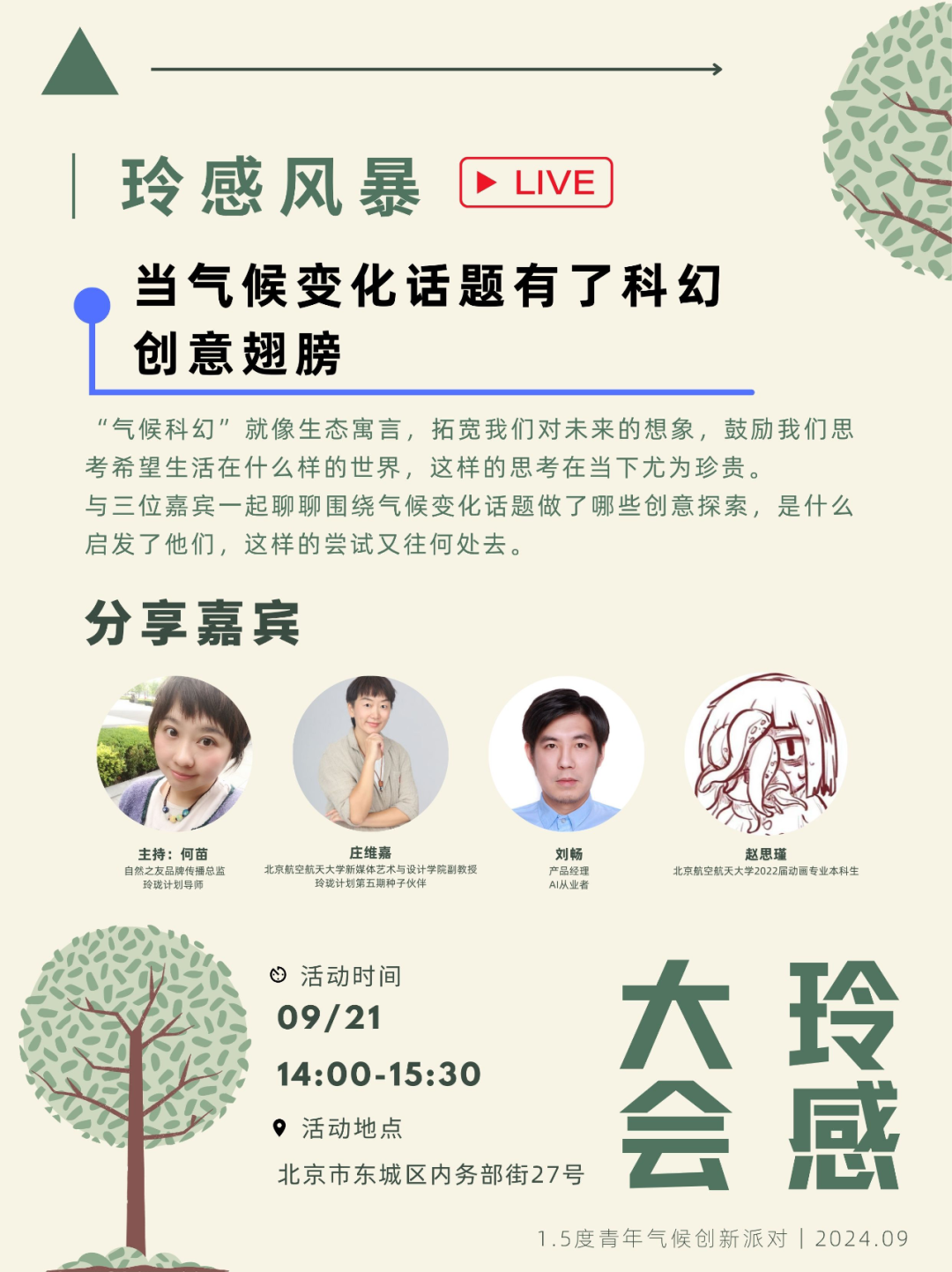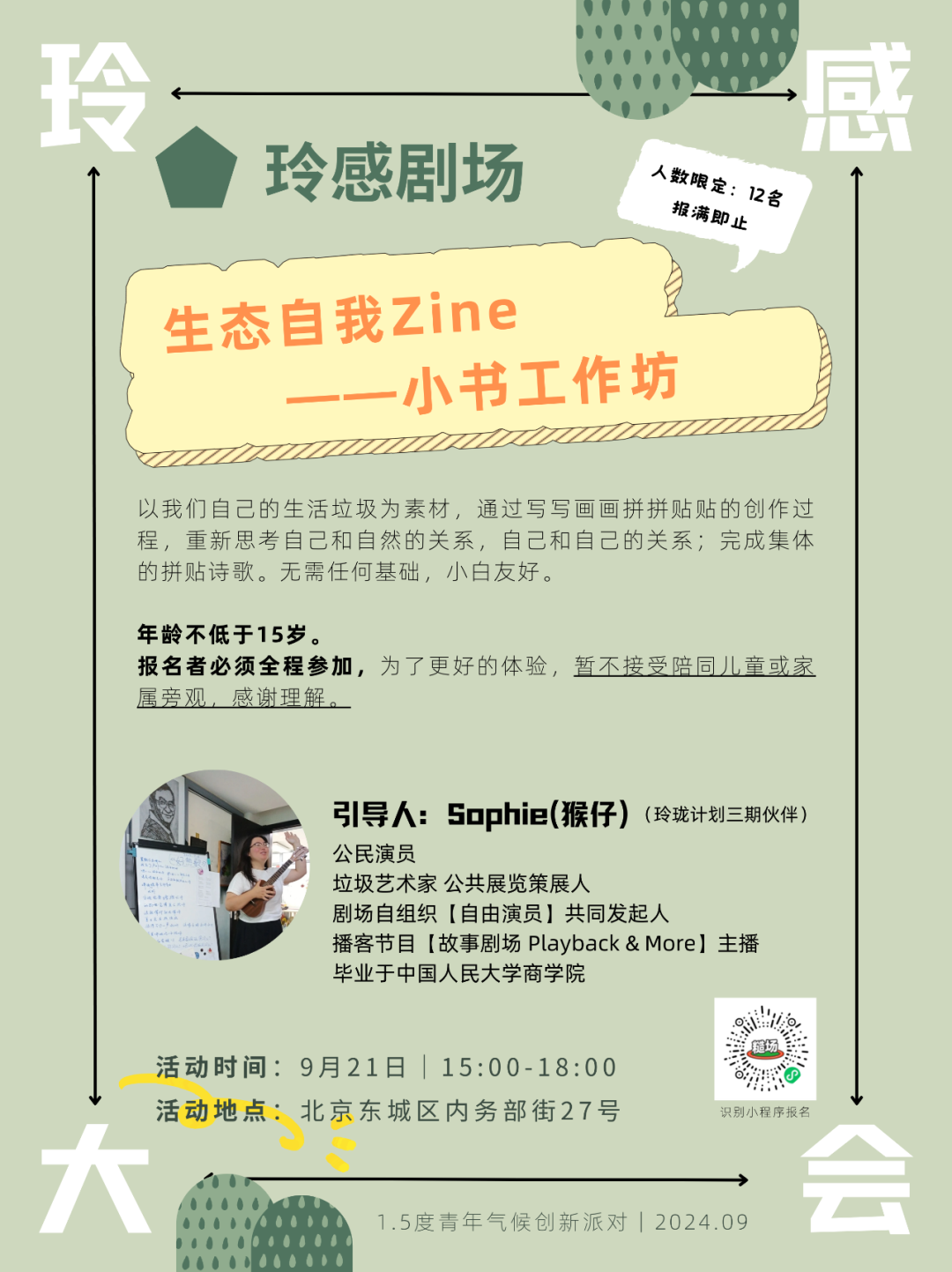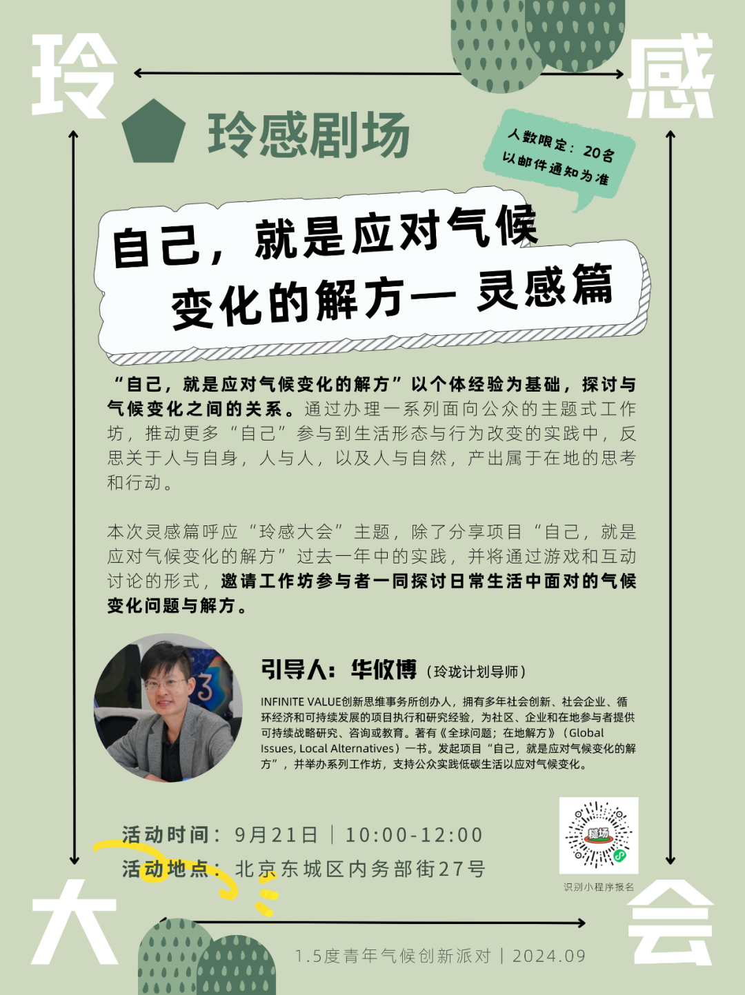 9月20-22日,欢迎你来线下以及在线上看直播的方式参与「玲感大会」——1.5度青年气候创新派对。我们在北京27院儿以及自然之友视频号等你来!