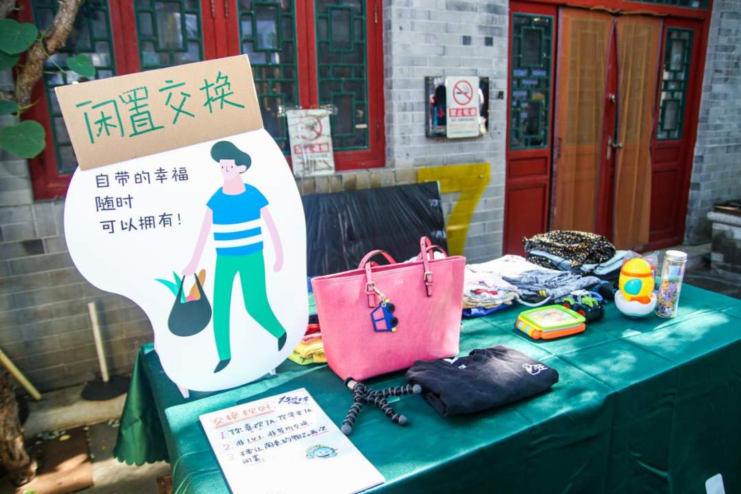 把家里闲置的玩偶包包拿到物物交换的摊位上给它们找个新家