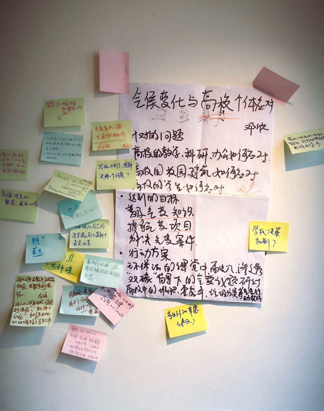 起初,邓欣想到的分议题有高校校园碳足迹核算、校内“绿色教学区、生活区、餐饮区、休闲区、办公区”共建、校园小菜园的绿色种植、学生社团的气候变化公益项目、校园旧物回收利用、校园垃圾分类、零废弃校园生活实践等,难以聚焦到一个落脚点上。