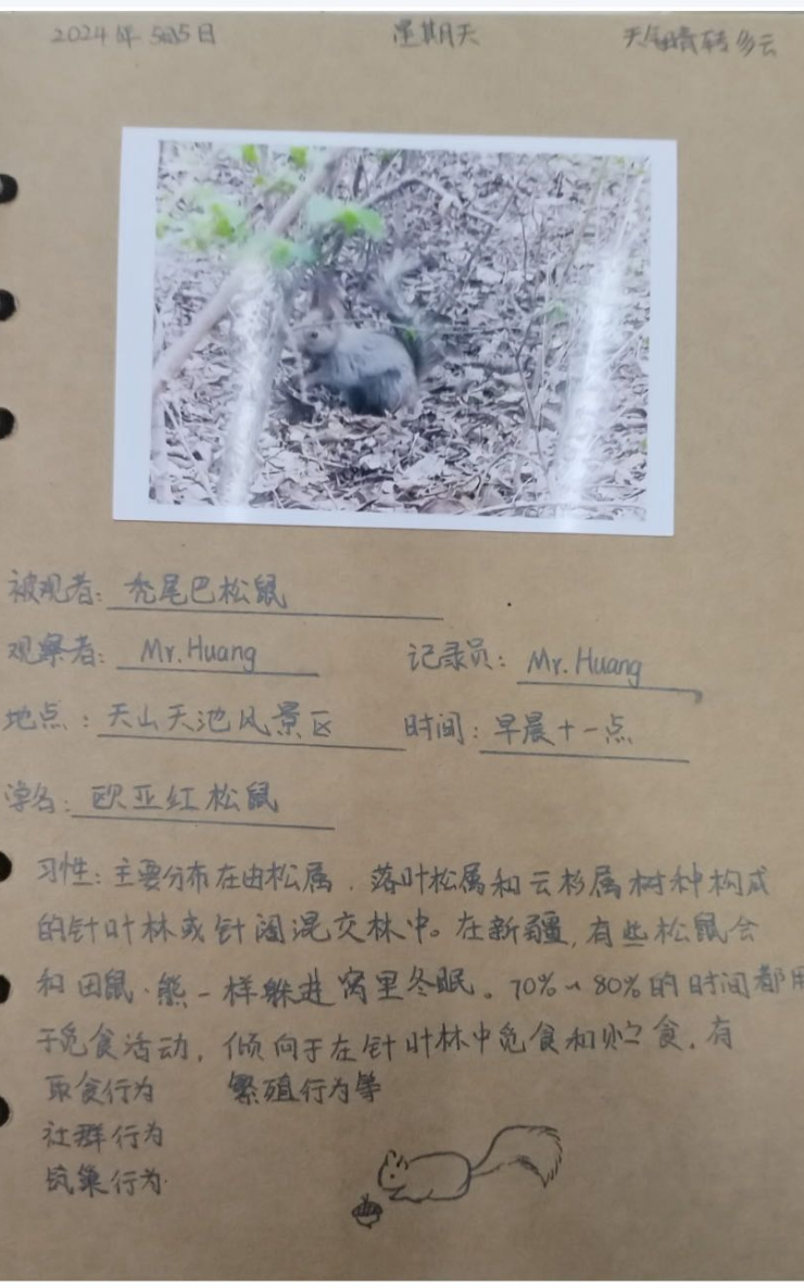 另一位学生是这学期参课的一位女同学,她在课程结束后,交给我一份手作的生物观测日记,记录了大约一个月的生物观测信息,日记中有不同种类的生物观测实拍照片、有自己手绘的图画,还有详尽的文字记载,我感觉又惊喜又欣慰。”邓欣说。