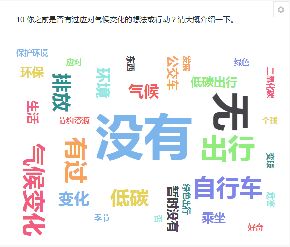 课程伊始,邓欣给学生们发放了气候调研问卷,去了解学生们的气候意识,结果是同学们对气候、碳中和的意识十分欠缺。