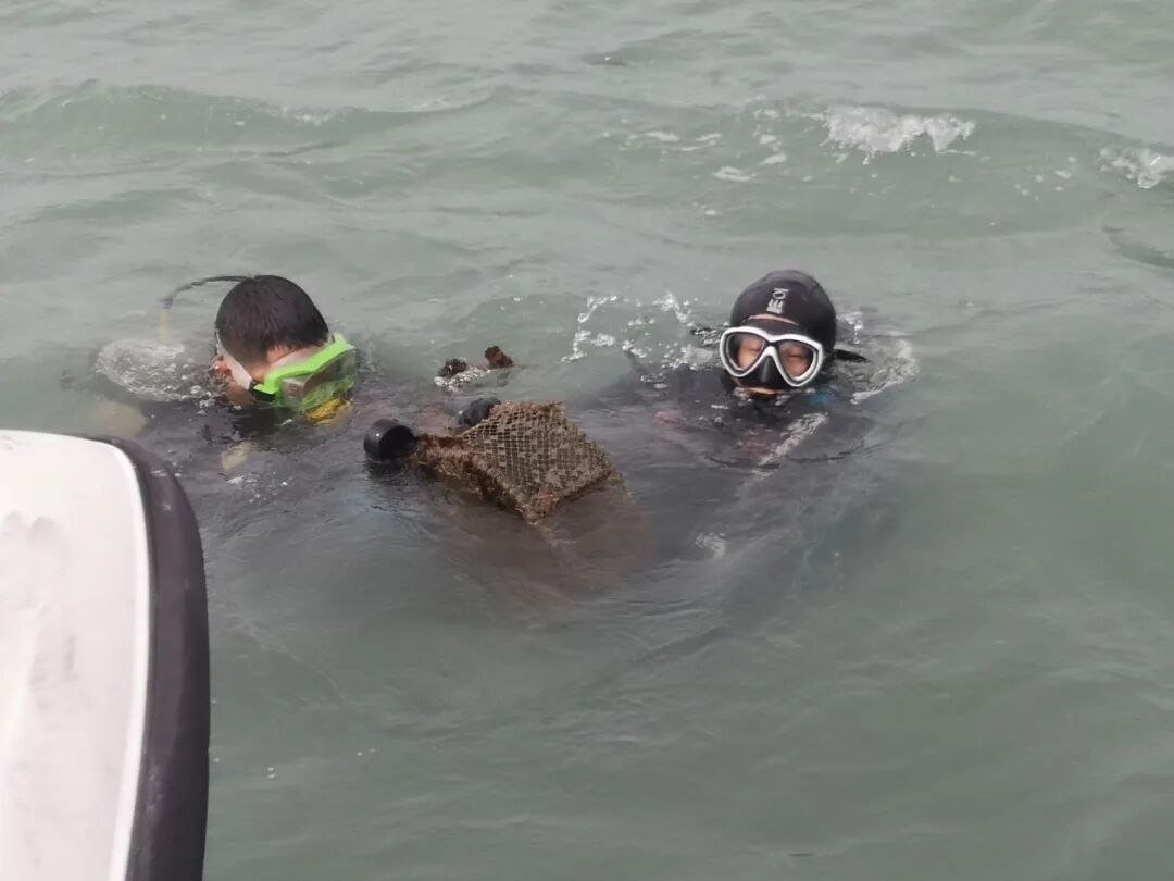 木木和公益机构伙伴欧汉超共同参与打捞海底垃圾