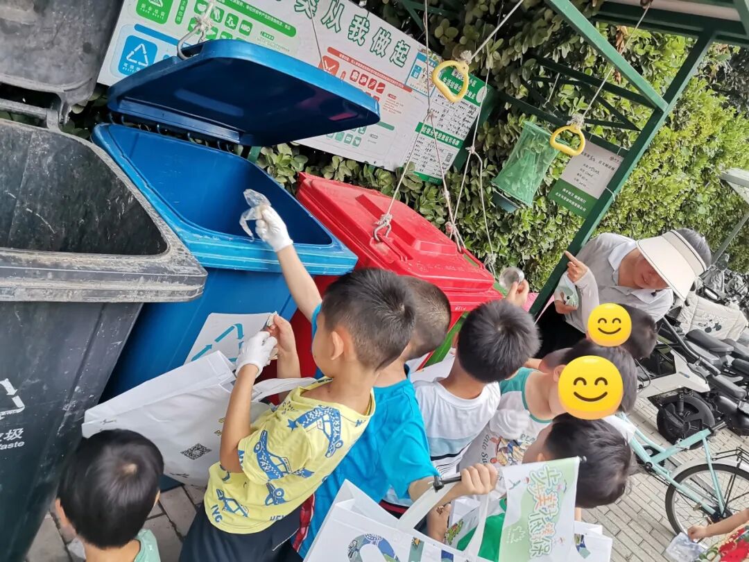 2023年,孩子们在净园活动中将捡拾的垃圾精准分类投放