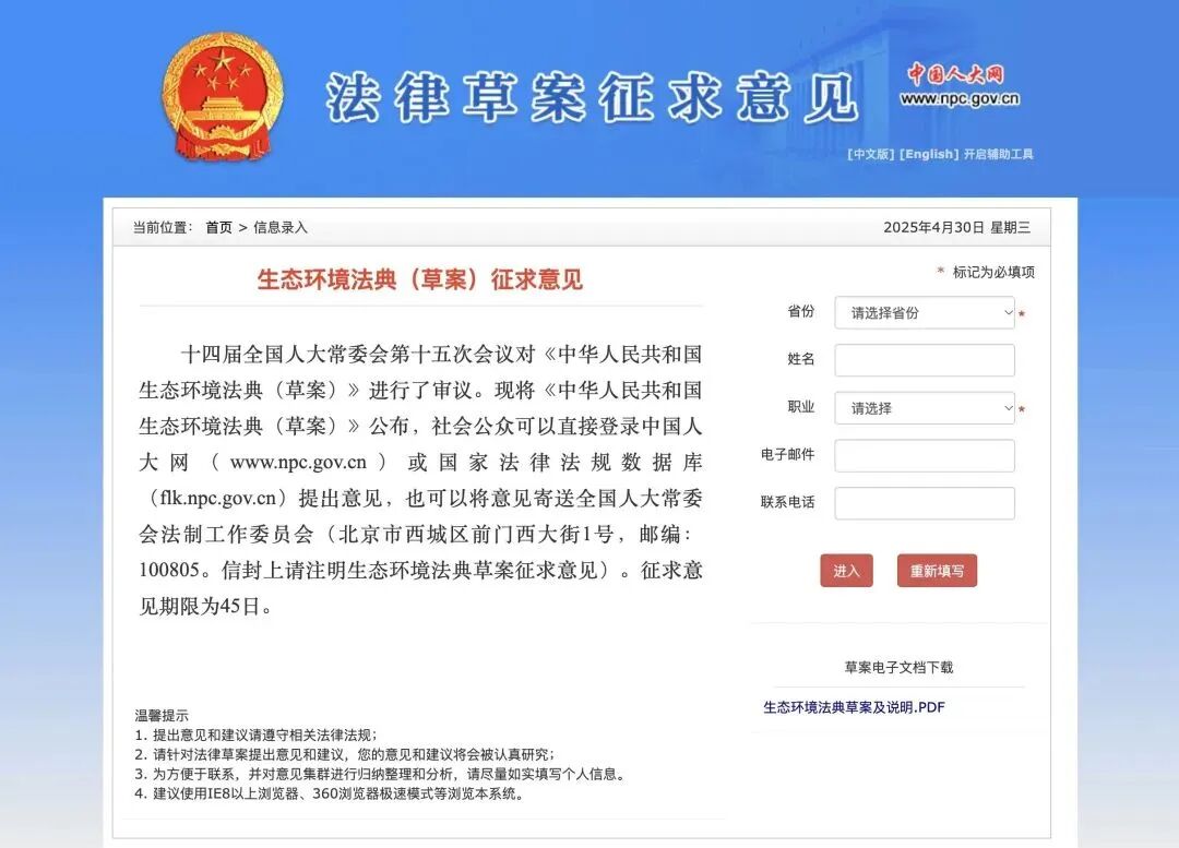 具体操作指引见→为《生态环境法典》提建议,你也可以“管”天“管”地“管”空气!