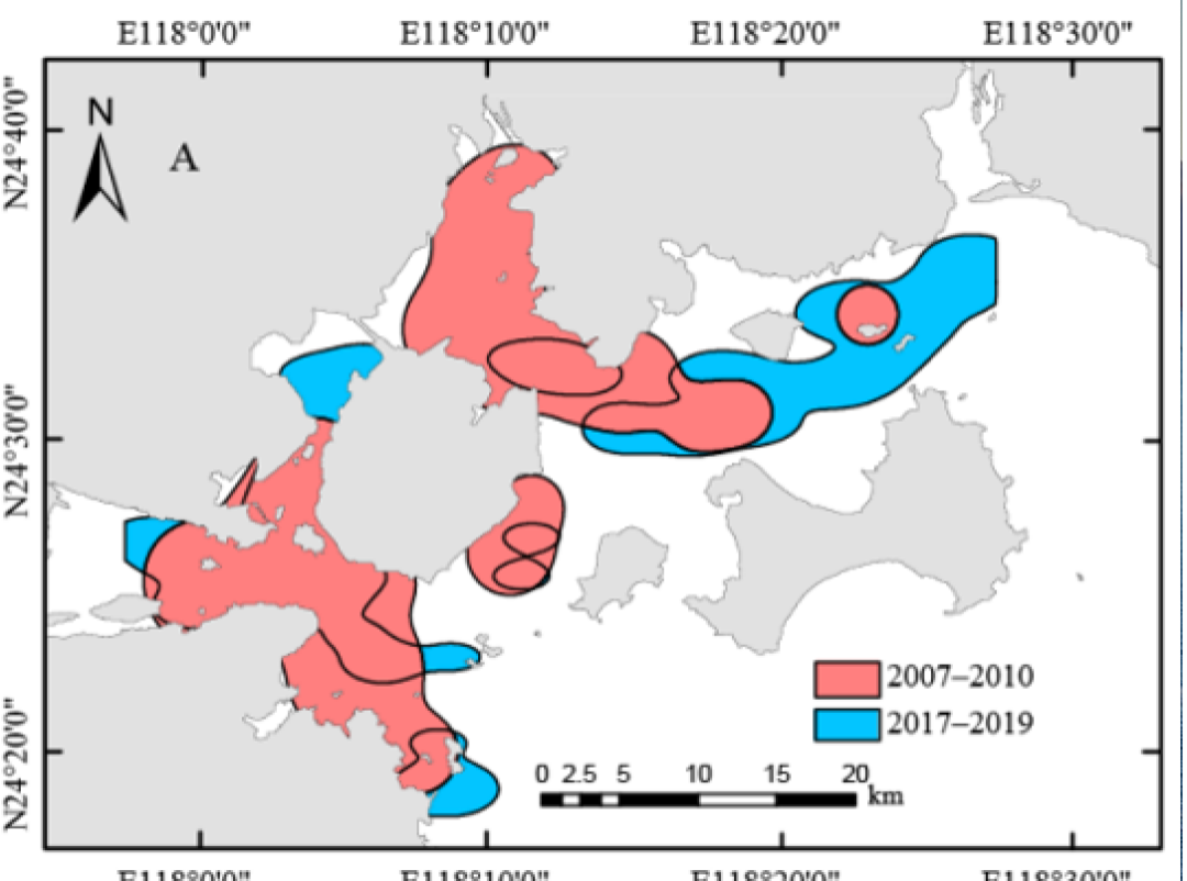 政府主管部门的报道、多篇权威科研文献以及多次目击影像资料,均充分证实案涉泊位工程所处的围头湾,是受《中华人民共和国野生动物保护法》严格保护的国家一级重点保护野生动物中华白海豚厦门湾种群东部社群(仅剩20头[1]左右)至关重要的栖息地。(见下图)