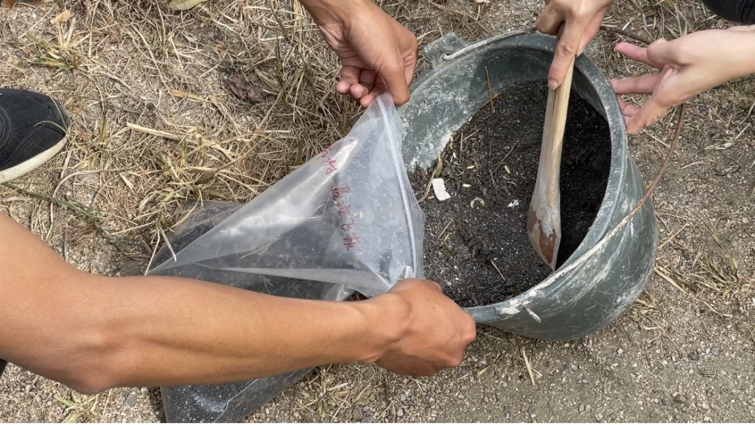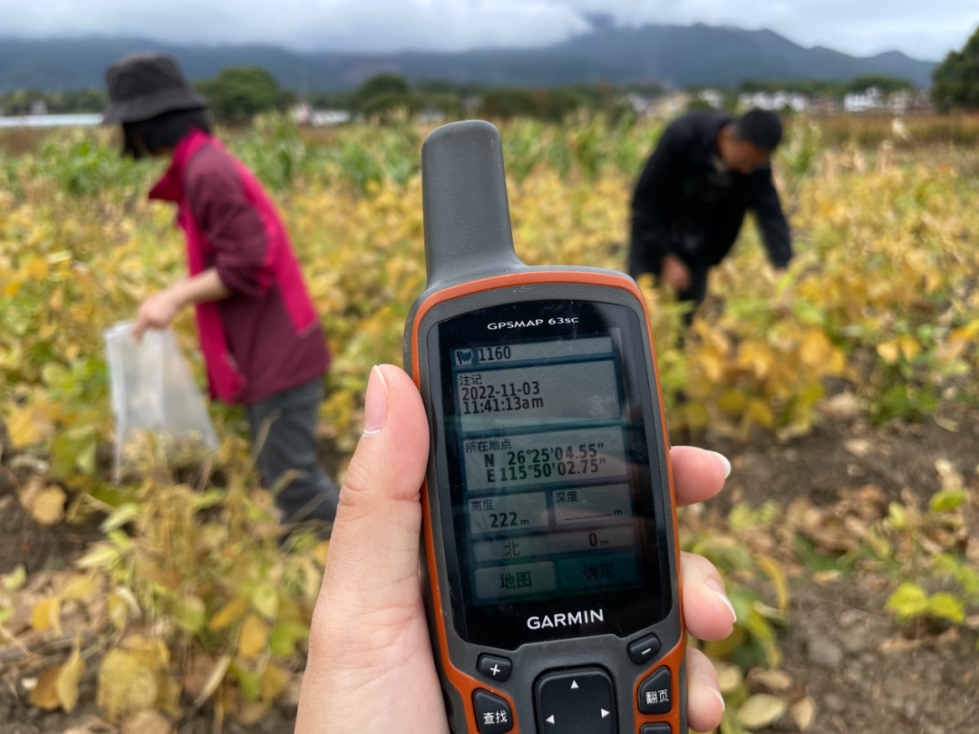 ▲2022年11月3日拍摄,自然之友律师在案涉现场周边农田中对农作物毛豆进行采样