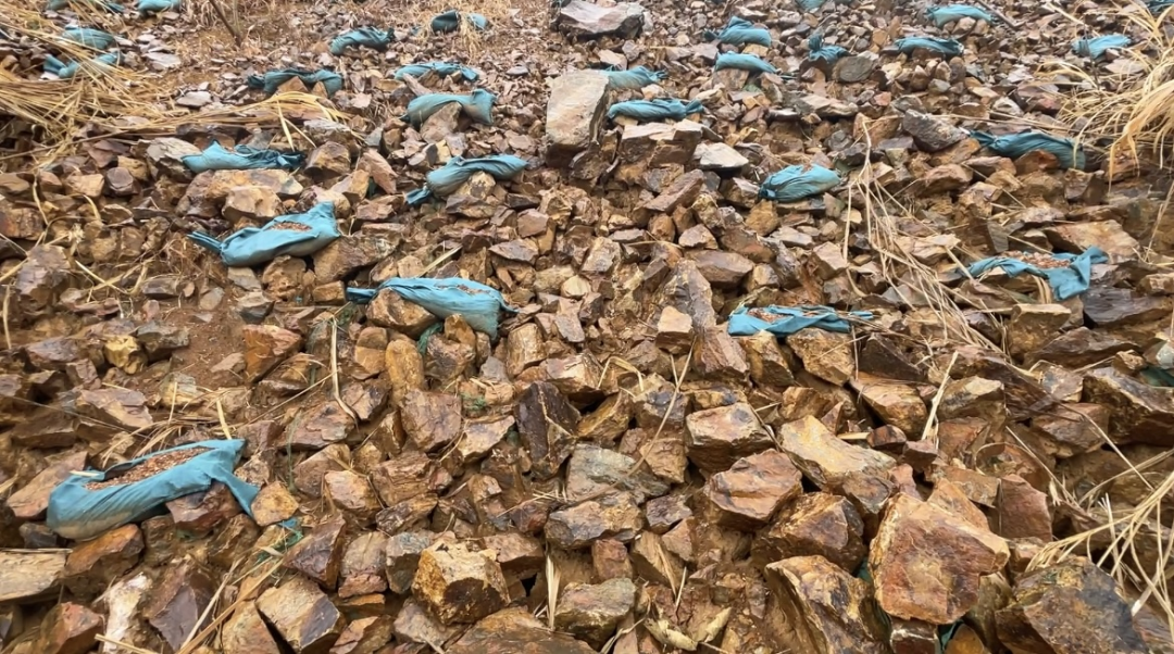 ▲2022年11月2日拍摄,打火岭矿山复绿项目陡坡喷播草籽均未发芽存活