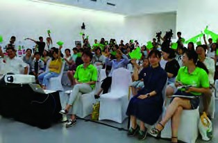 这对巨型折纸绿孔雀长3米、高逾2米,就摆放在发布会入口处,赚足了眼球。孔雀脖子修长,造型优雅挺拔,绿色的纸质羽翼在侧光下反射华丽而有层次的光泽,似乎时刻待飞。到场的观众们争相合影,过路人也会好奇地走近打探一番。