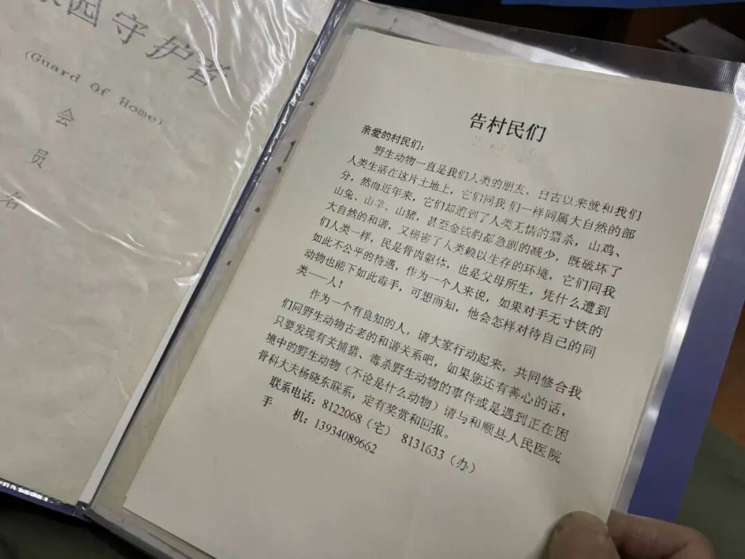 现在回想,杨晓东认为那是一段非常重要的“田野调查”时期,不仅对于家乡的环境有了更加深入的了解,还在好多个村里刷了脸熟,村里老百姓知道了他是县医院的骨科医生,家里人有个磕磕碰碰,就会拿着“家园守护者”的宣传单去找这位杨医生寻求建议。他也经常在非工作时间接到来自村民的电话,无偿提供就诊的建议;有时候走在马路上,迎面来位熟人上前打招呼,直接上演一个就地问诊,这都是常有的事情。通过这样的连接,杨晓东逐渐搭建起了自己的“社区信息网络”,每每有村民联系,他总会问问对方最近有没有什么受伤动物情报,慢慢地,村民们也会主动和他分享这些信息。
