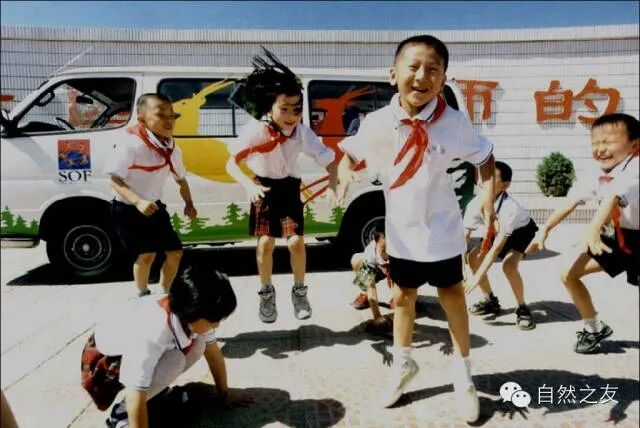 那年春天,自然之友同时启动了2个项目,一个是“绿色希望行动”,项目开发了一套针对小学生开展体验式、参与式的环境教育课程,由自然之友负责培训志愿者,再由志愿者去到各地希望小学进行环境教育的推广;另一个是“羚羊车”项目,以几辆画着卡通藏羚羊的金杯车为载体,由自然之友负责运营车辆,在中国贫困地区学校里进行流动环境教学。这两个项目的侧重点不同,但又互相补充。