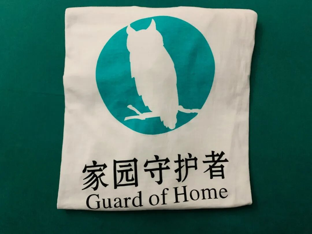回到家乡的杨晓东,迫不及待的将脑子里的方案实现——动员家里男女老少所有成员,组建起一个民间志愿者团体,名字叫做“家园守护者”;紧接着,从他孩子的画本里,寻找了一只猫头鹰图案,经过加工,logo就有了。